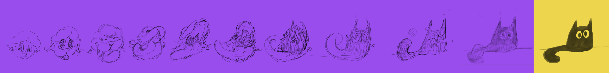 These are my frames. I started from Lowen (Sharely’s character) and transitioned into this little cat, which Mark then picked up from.